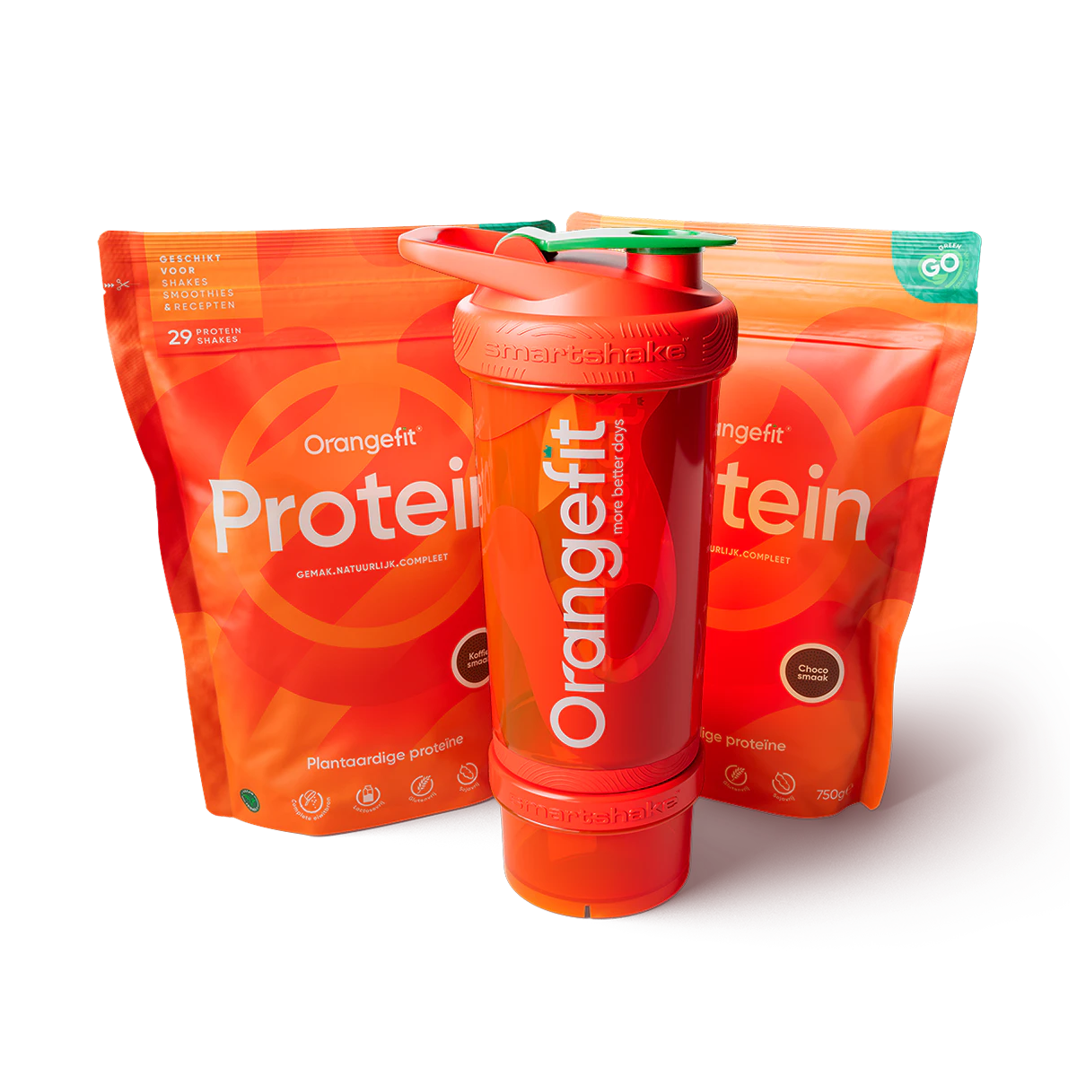 Orangefit® Protein is made from yellow split peas — a great source of protein! They contain all essential amino acids and are easy to digest. We also use natural flavourings like fruit and stevia. Plant power!