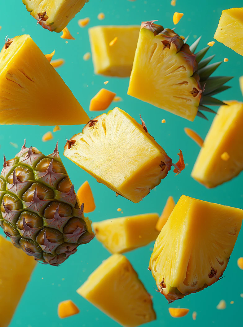 Hydrolyzed pea protein, natural flavouring, mango powder, pineapple powder, acidity regulators: citric acid, malic acid, emulsifier: sunflower lecithin, sweetener: steviol glycosides from stevia (this comes from a plant), coloring: beta-carotene